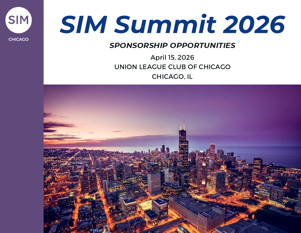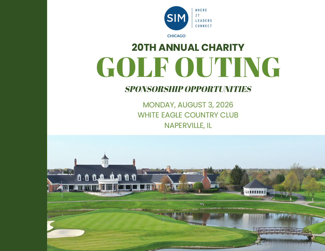 The Power of Sponsorship SIM Chicago is a leading chapter of the Society of Information Management (SIM). We are the Midwest’s premier, volunteer community of senior IT executives from industry, government, non-profit, and academic sectors. SIM Chicago event sponsorship provides a unique opportunity to connect with technology and business thought leaders to demonstrate your firm’s commitment to the field of information management. Let’s talk! Our sponsorship team is eager to learn more about your organization and explore how participating in our community could help advance your business objectives. Email sponsorship@sim-chicago.org with any questions or to schedule a call with a member of our sponsorship team. Sponsorship Opportunities SIM Chicago offers a variety of events throughout the year tailored to the needs of our community, including: